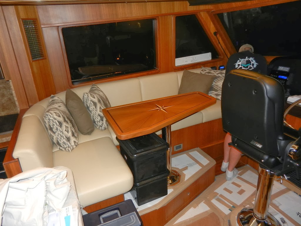 Meanwhile, much was going on at the boat. Chris, from Concord, had to rerun two cables that had not been installed properly. One from the pilothouse to the top of the hardtop and one from the main deck to the VIP stateroom. This had taken most of the day (not to mention some mess).